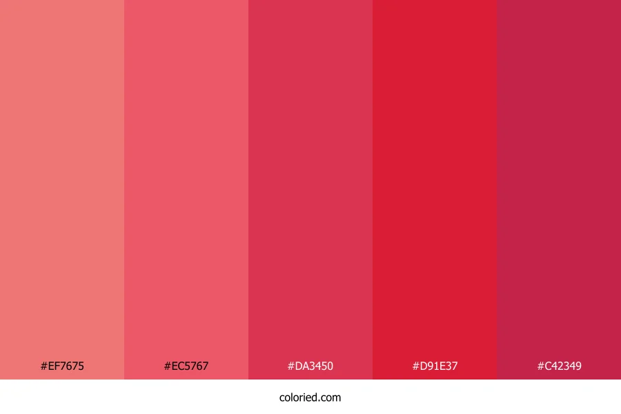 | #EC5767 | 236, 87, 103 | 354, 80%, 63% | 0%, 63%, 56%, 7% | oklch(0.658 0.183 17) | |