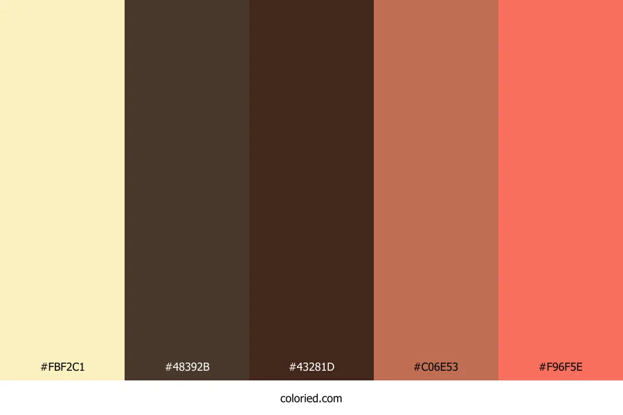 | #F96F5E | 249, 111, 94 | 7, 93%, 67% | 0%, 55%, 62%, 2% | oklch(0.706 0.172 29) |