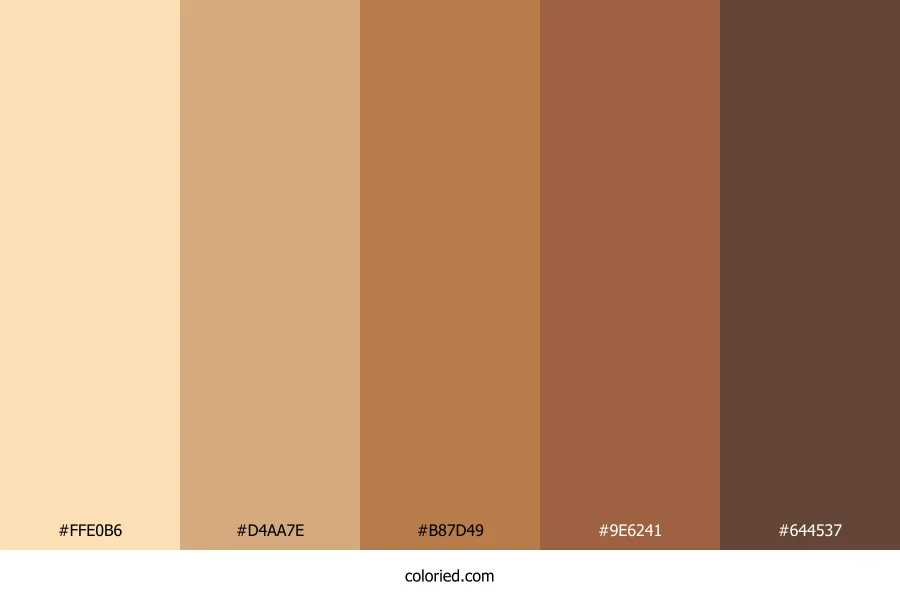 | #D4AA7E | 212, 170, 126 | 31, 50%, 66% | 0%, 20%, 41%, 17% | oklch(0.766 0.077 68) | |