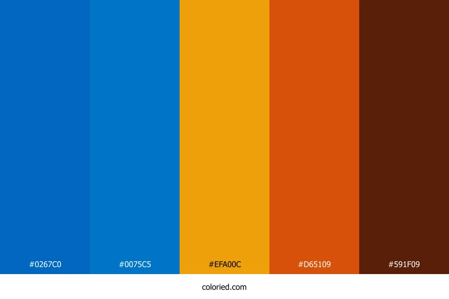 ![]() | #0267C0 | 2, 103, 192 | 208, 98%, 38% | 99%, 46%, 0%, 25% | oklch(0.516 0.160 253) |
