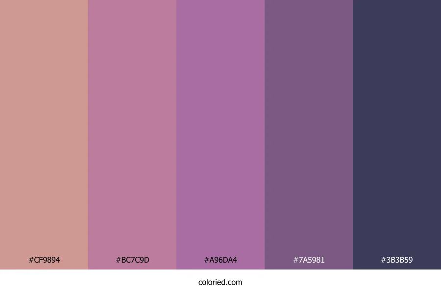 ![]() | #CF9894 | 207, 152, 148 | 4, 38%, 70% | 0%, 27%, 29%, 19% | oklch(0.731 0.067 23) |