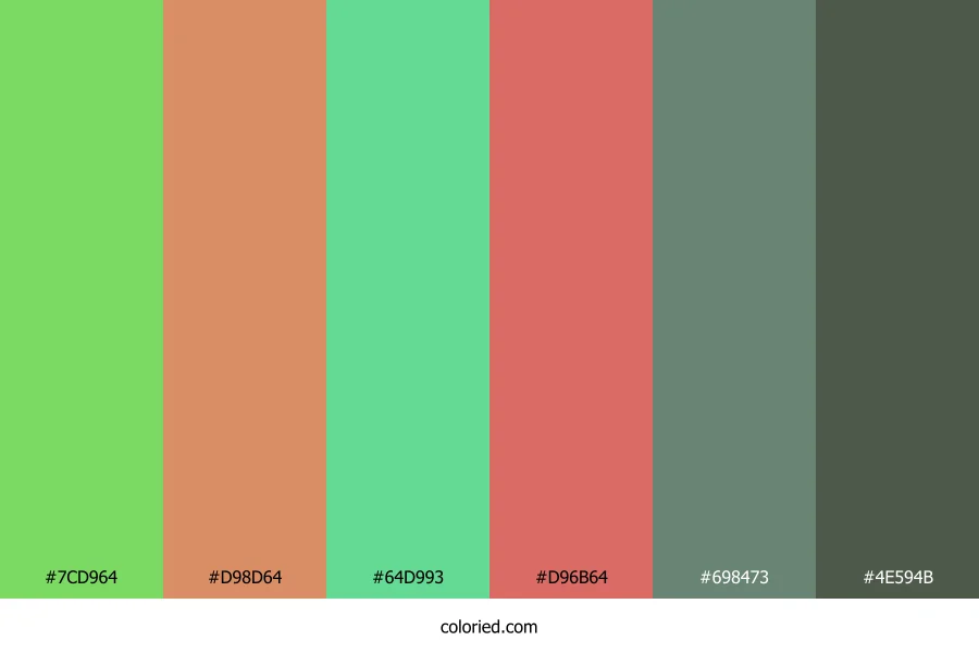 | #D96B64 | 217, 107, 100 | 4, 61%, 62% | 0%, 51%, 54%, 15% | oklch(0.656 0.139 25) | |