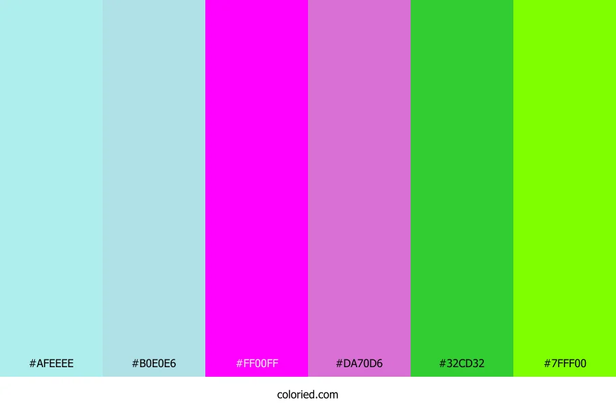 ![]() | #AFEEEE | 175, 238, 238 | 180, 65%, 81% | 26%, 0%, 0%, 7% | oklch(0.907 0.063 196) |