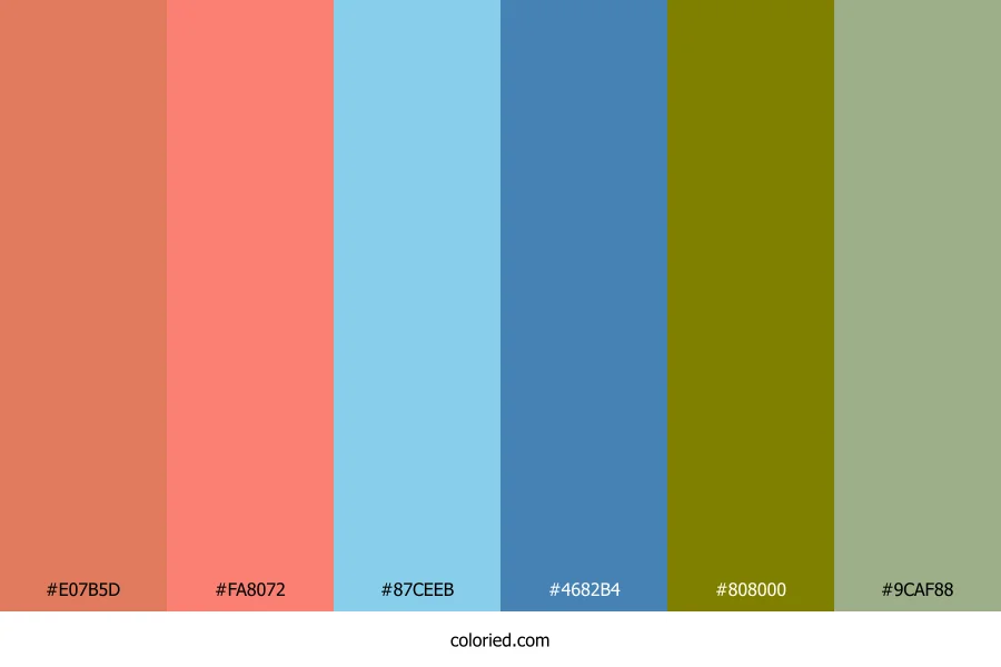 ![]() | #E07B5D | 224, 123, 93 | 14, 68%, 62% | 0%, 45%, 58%, 12% | oklch(0.689 0.133 37) |