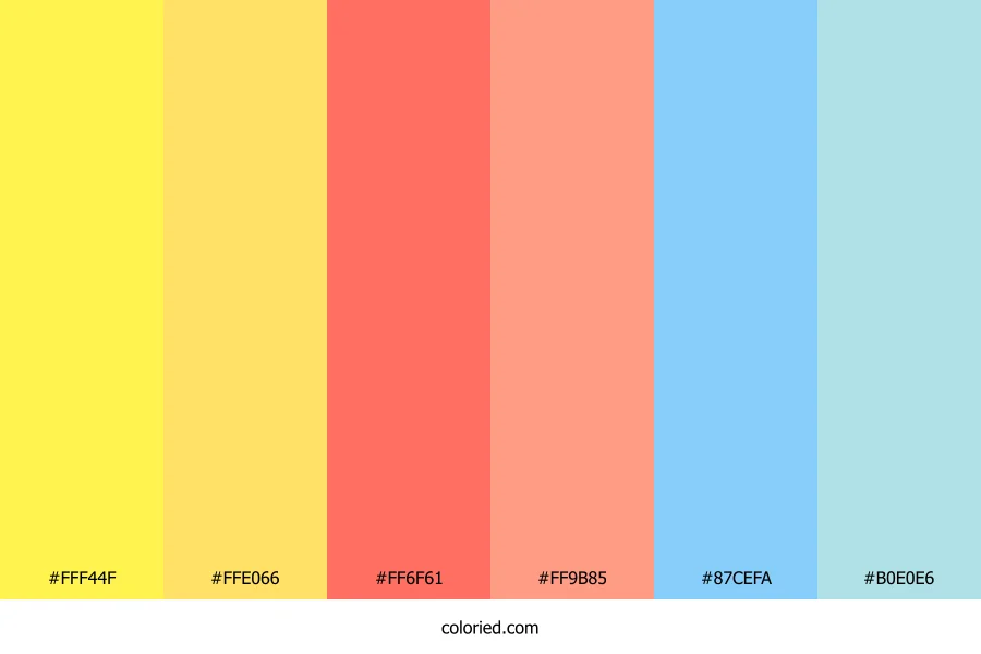 ![]() | #FFF44F | 255, 244, 79 | 56, 100%, 65% | 0%, 4%, 69%, 0% | oklch(0.948 0.177 106) |