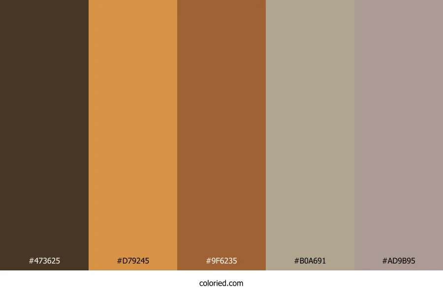 ![]() | #473625 | 71, 54, 37 | 30, 31%, 21% | 0%, 24%, 48%, 72% | oklch(0.347 0.037 66) |