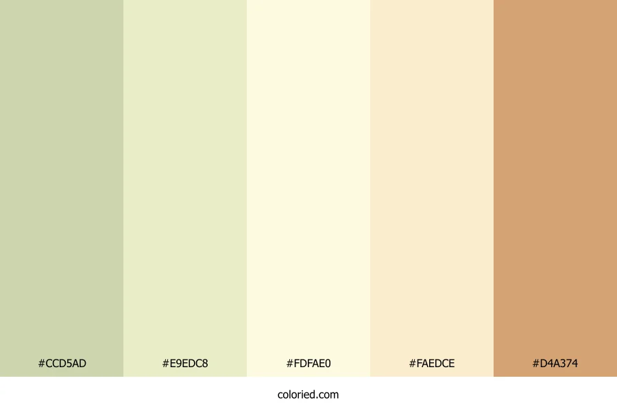 ![]() | #CCD5AD | 204, 213, 173 | 73, 32%, 76% | 4%, 0%, 19%, 16% | oklch(0.856 0.054 118) |