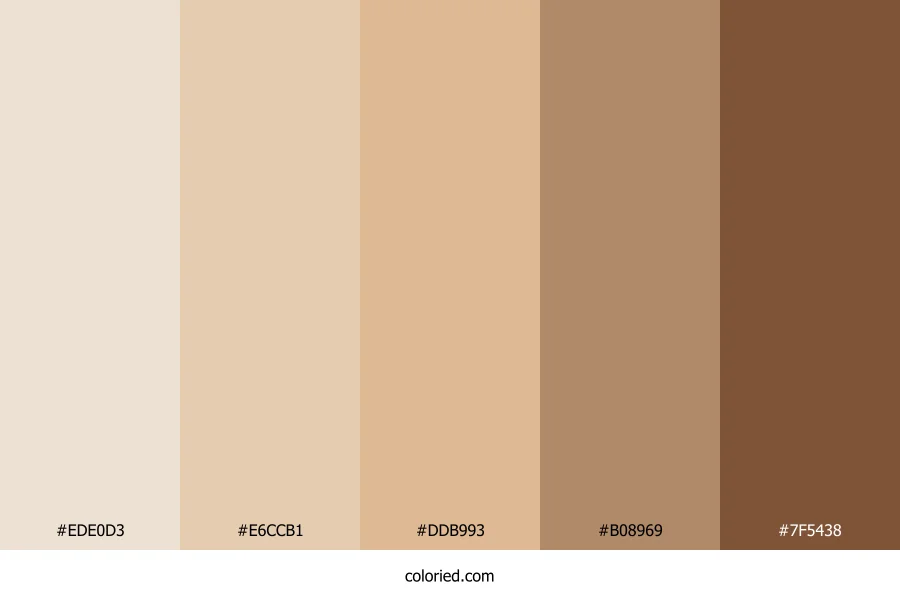 | #DDB993 | 221, 185, 147 | 31, 52%, 72% | 0%, 16%, 33%, 13% | oklch(0.808 0.066 68) | |