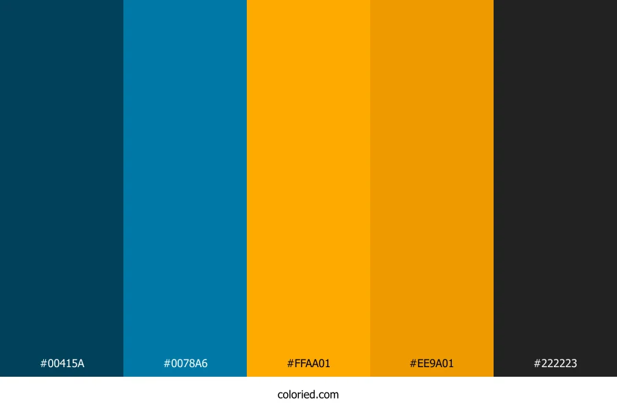 ![]() | #00415A | 0, 65, 90 | 197, 100%, 18% | 100%, 28%, 0%, 65% | oklch(0.352 0.072 232) |
