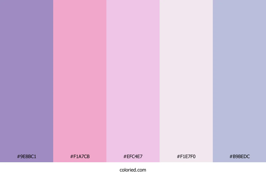 ![]() | #9E8BC1 | 158, 139, 193 | 261, 30%, 65% | 18%, 28%, 0%, 24% | oklch(0.673 0.081 300) |