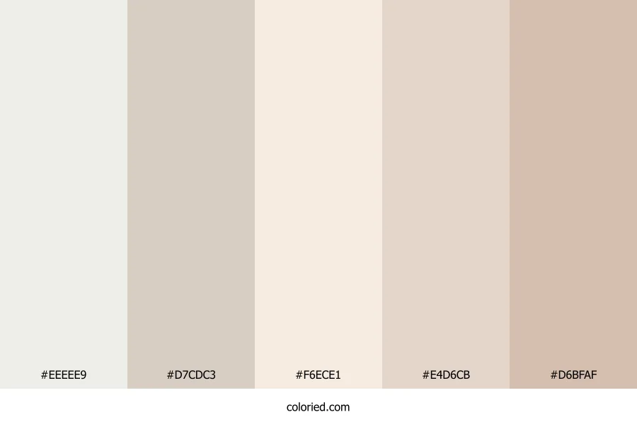 | #E4D6CB | 228, 214, 203 | 26, 32%, 85% | 0%, 6%, 11%, 11% | oklch(0.884 0.021 61) | |