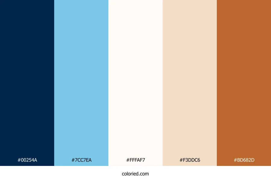 ![]() | #00254A | 0, 37, 74 | 210, 100%, 15% | 100%, 50%, 0%, 71% | oklch(0.264 0.080 252) |