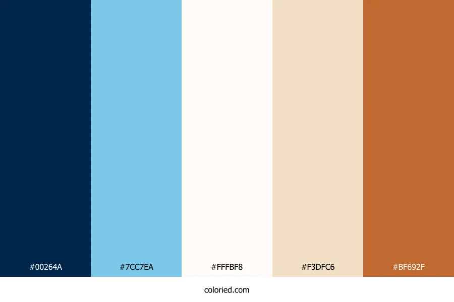 ![]() | #00264A | 0, 38, 74 | 209, 100%, 15% | 100%, 49%, 0%, 71% | oklch(0.266 0.079 251) |