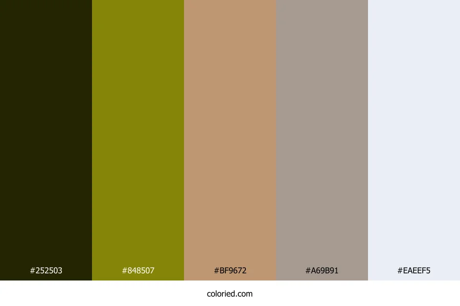 ![]() | #252503 | 37, 37, 3 | 60, 85%, 8% | 0%, 0%, 92%, 85% | oklch(0.256 0.052 110) |