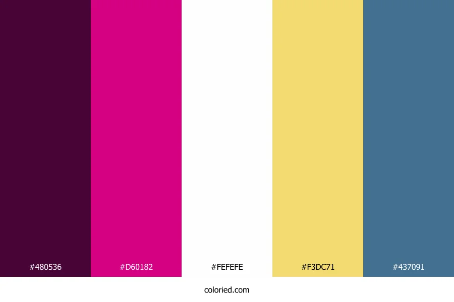 ![]() | #480536 | 72, 5, 54 | 316, 87%, 15% | 0%, 93%, 25%, 72% | oklch(0.274 0.110 342) |