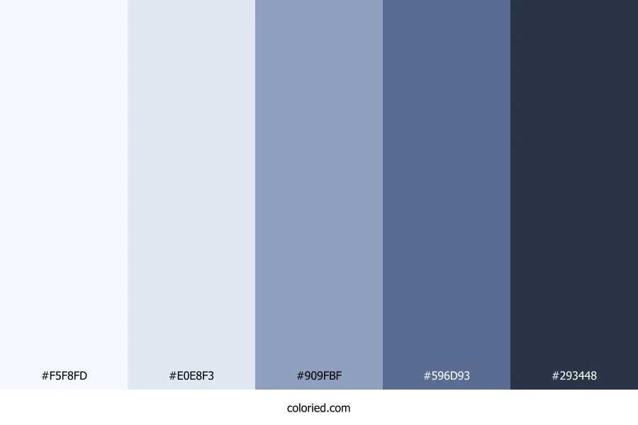 | #909FBF | 144, 159, 191 | 221, 27%, 66% | 25%, 17%, 0%, 25% | oklch(0.702 0.050 265) | |