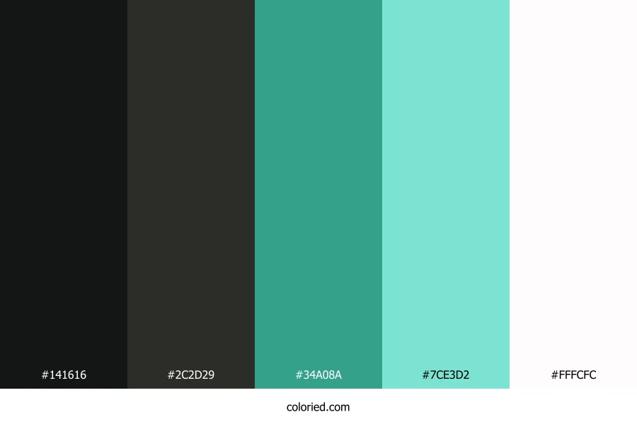 ![]() | #141616 | 20, 22, 22 | 180, 5%, 8% | 9%, 0%, 0%, 91% | oklch(0.198 0.003 197) |