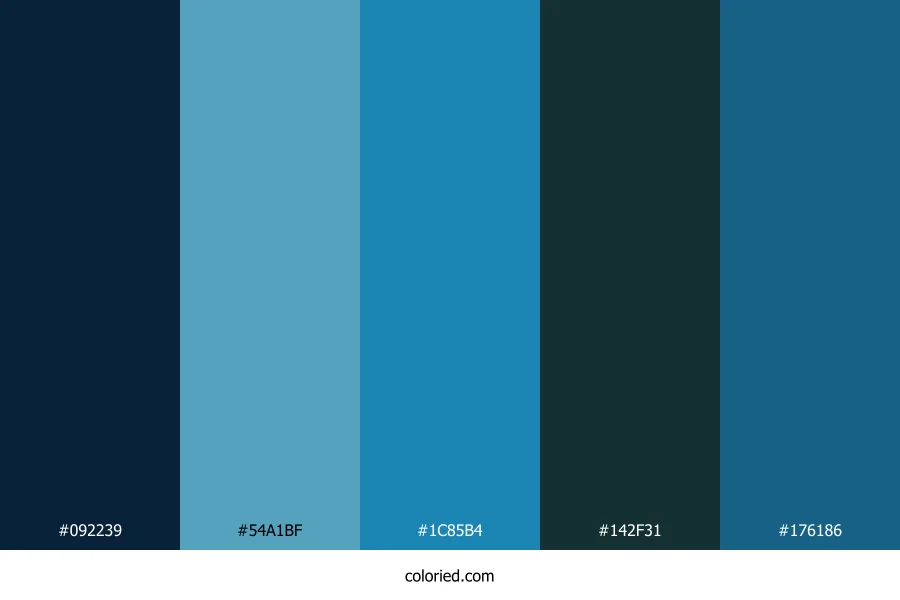 ![]() | #092239 | 9, 34, 57 | 209, 73%, 13% | 84%, 40%, 0%, 78% | oklch(0.246 0.054 249) |