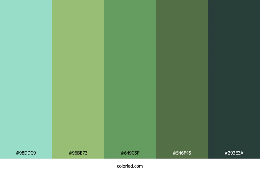 ![]() | #98DDC9 | 152, 221, 201 | 163, 50%, 73% | 31%, 0%, 9%, 13% | oklch(0.846 0.075 174) |