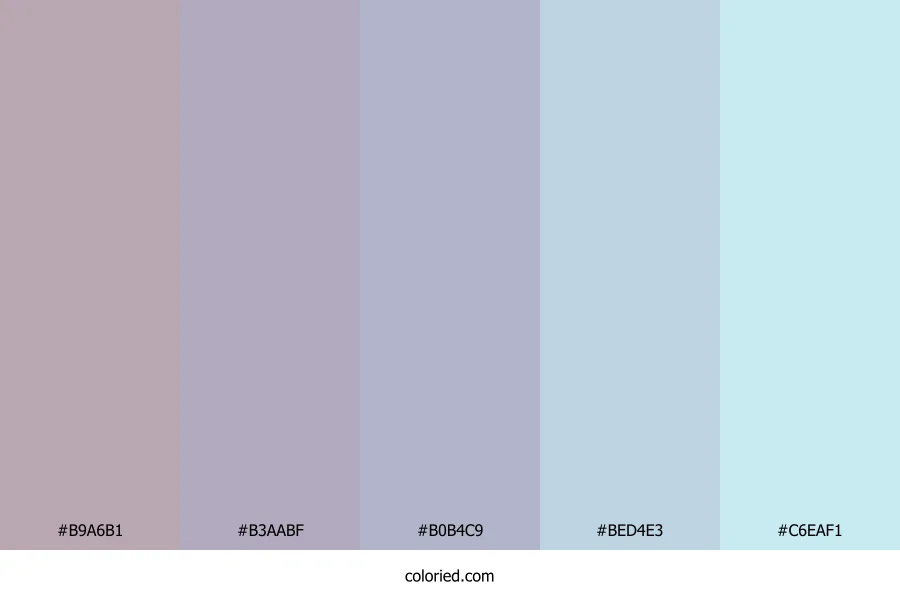 | #B3AABF | 179, 170, 191 | 266, 14%, 71% | 6%, 11%, 0%, 25% | oklch(0.752 0.031 305) | |